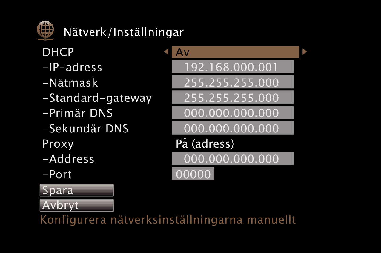 Om du är ansluten till en nätport (router) ska du mata in dess IP-adress.