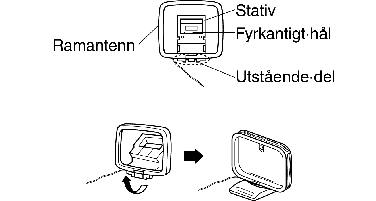 Sätt stativet genom ramantennens nedre del från baksidan och böj den framåt.