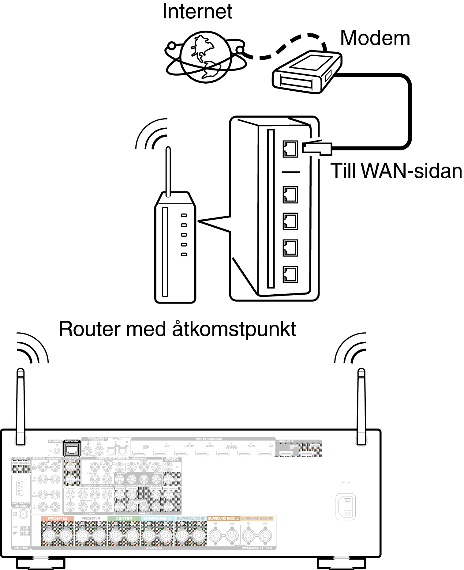Router-typer som kan användas beror på din Internet-leverantör. Kontakta din Internet-leverantör eller en datoraffär för närmare anvisningar.