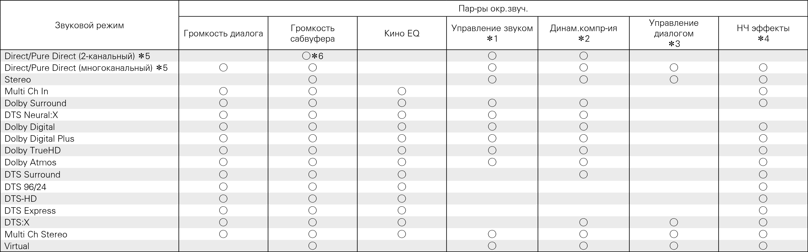 Во время воспроизведения в режиме Pure Direct параметры объемного звука будут аналогичны параметрам в режиме Direct.