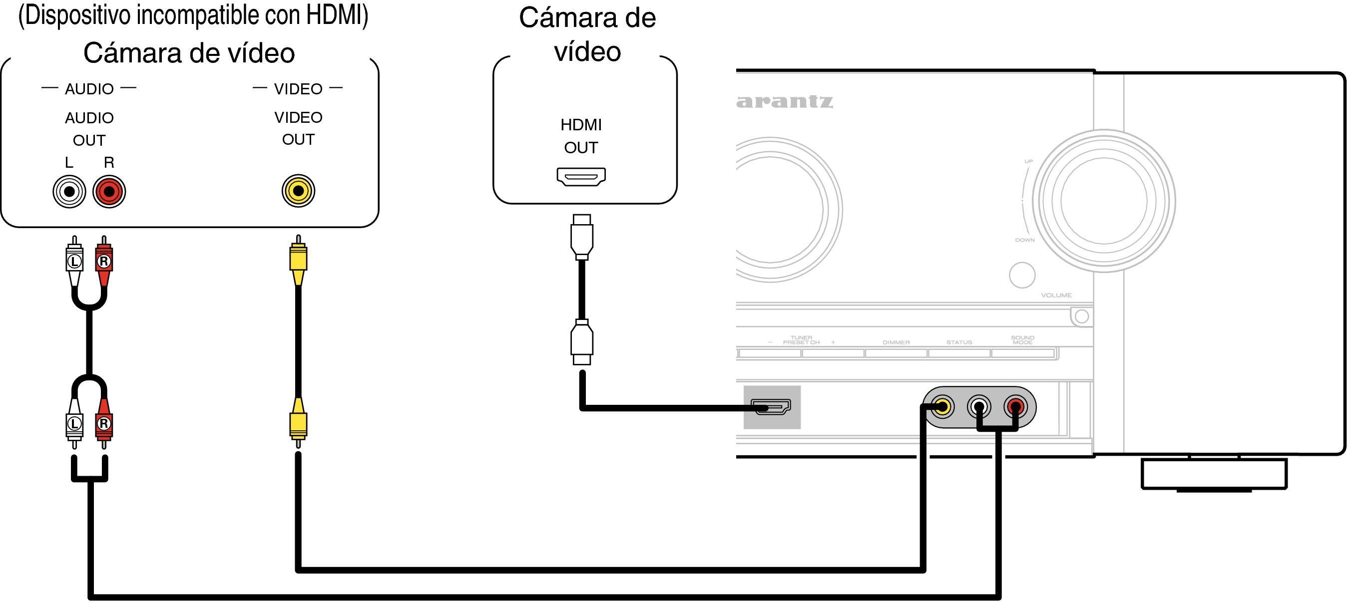 En esta explicación se incluye la conexión con una cámara de vídeo como ejemplo.