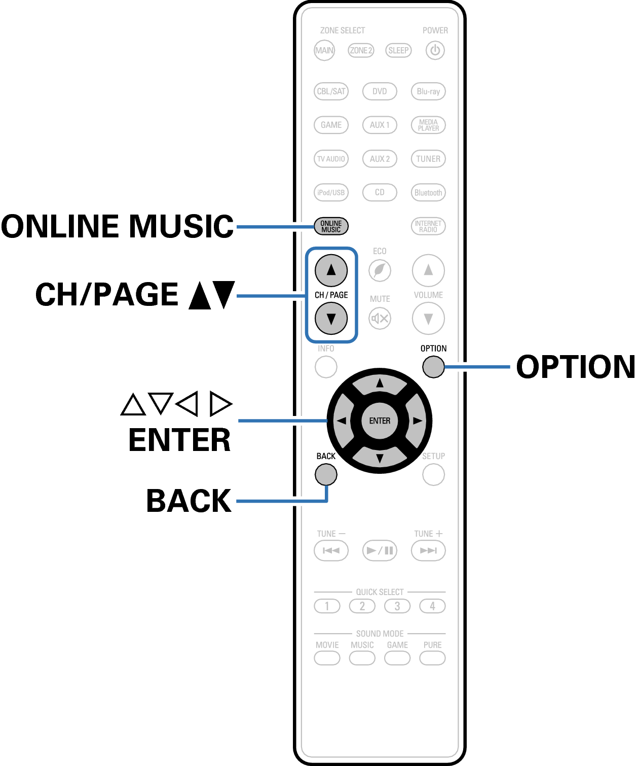 Botones en el mando a distancia utilizados para esta operación