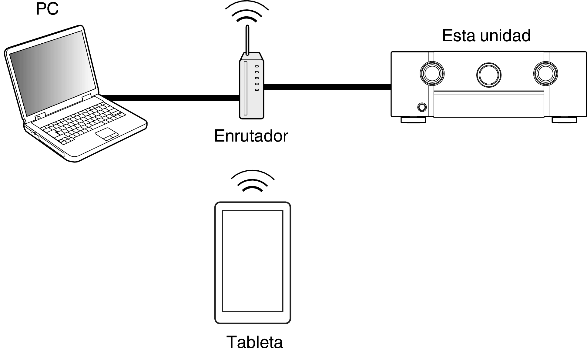 Esta unidad y el PC o tableta deben conectarse correctamente a la red para poder utilizar la función de control web. (Conexión en una red doméstica (LAN)enlace)