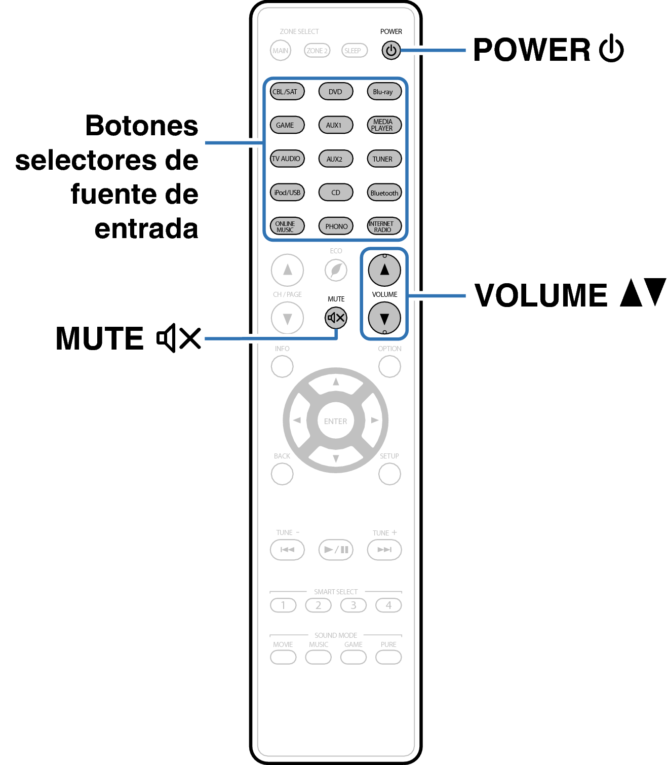Botones en el mando a distancia utilizados para esta operación