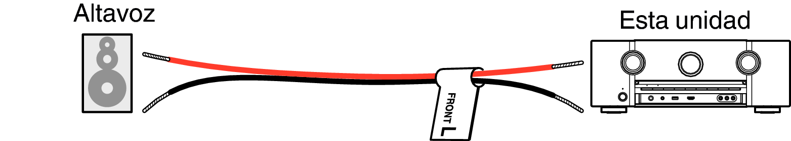 Entonces, realice la conexión, de manera que el color del terminal del altavoz coincida con la etiqueta del cable del altavoz.
