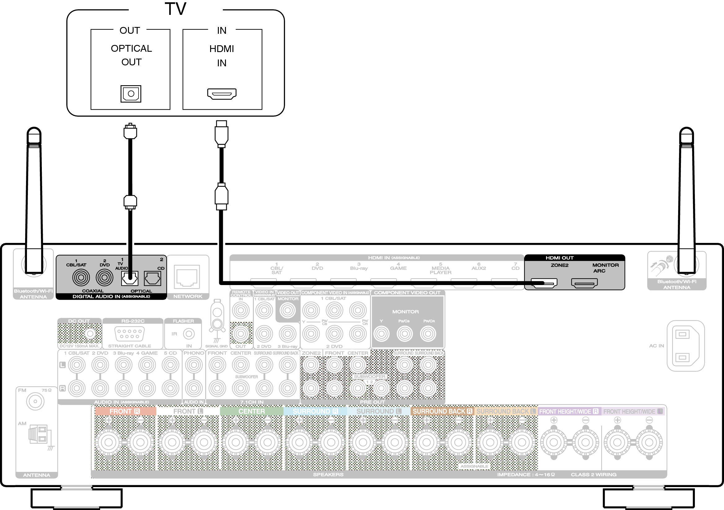 Conexión 2 : TV equipado con un conector HDMI y compatible con la función ARC (Audio Return Channel)