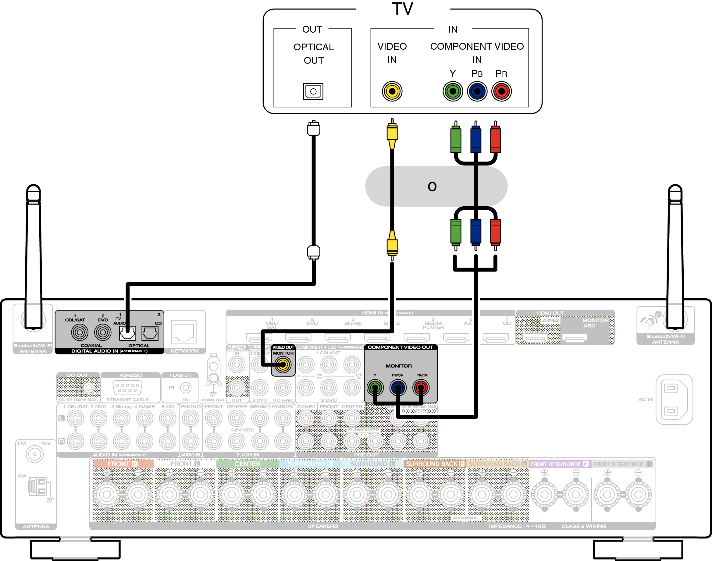 Utilice un cable de vídeo por componentes o de vídeo para conectar el TV a esta unidad.