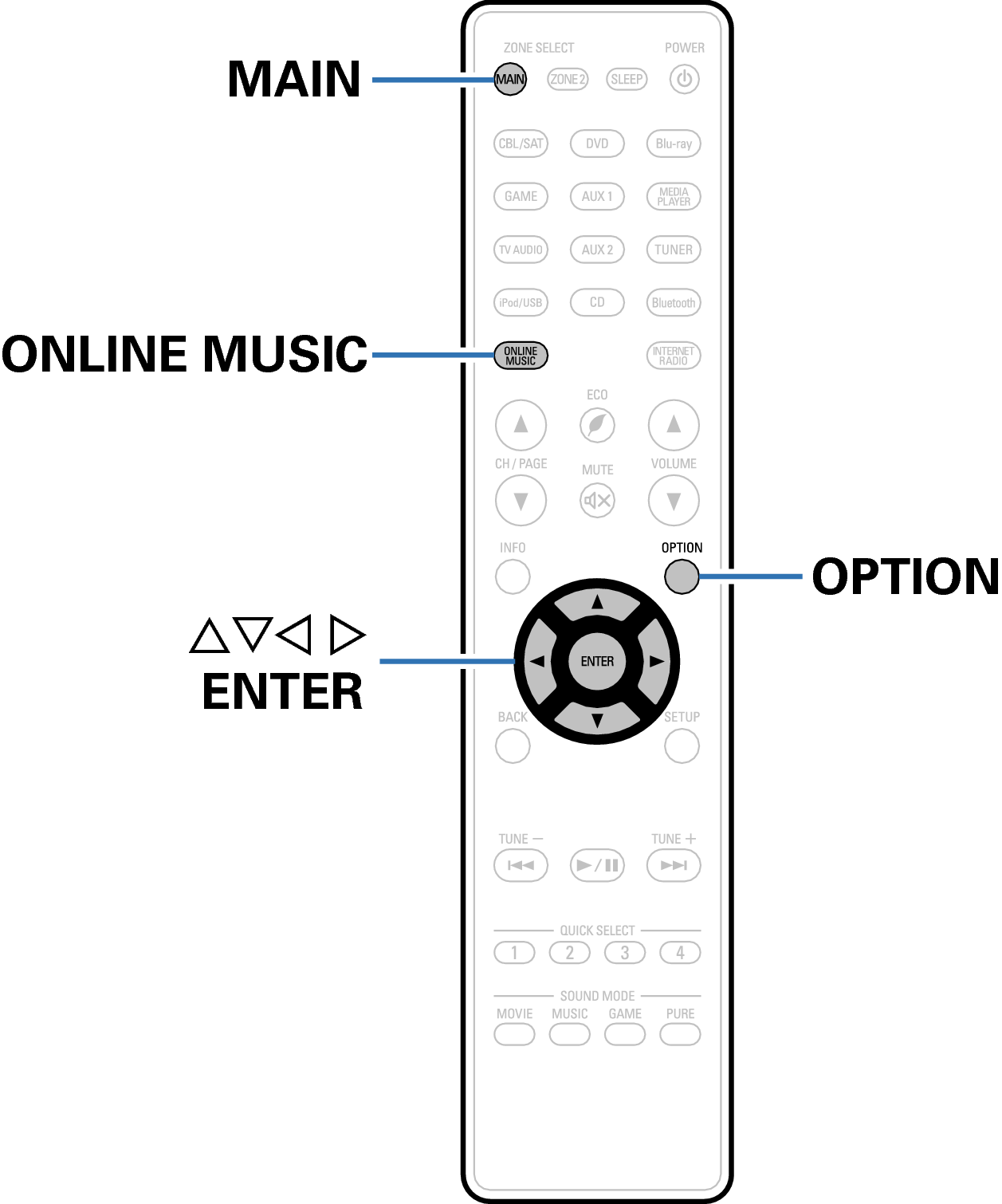 Botones en el mando a distancia utilizados para esta operación