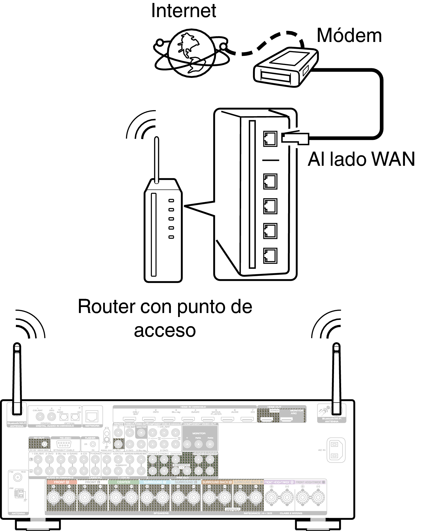 Esta unidad no es compatible con PPPoE. Es necesario un router compatible con PPPoE si su línea contratada no está ajustada utilizando PPPoE.