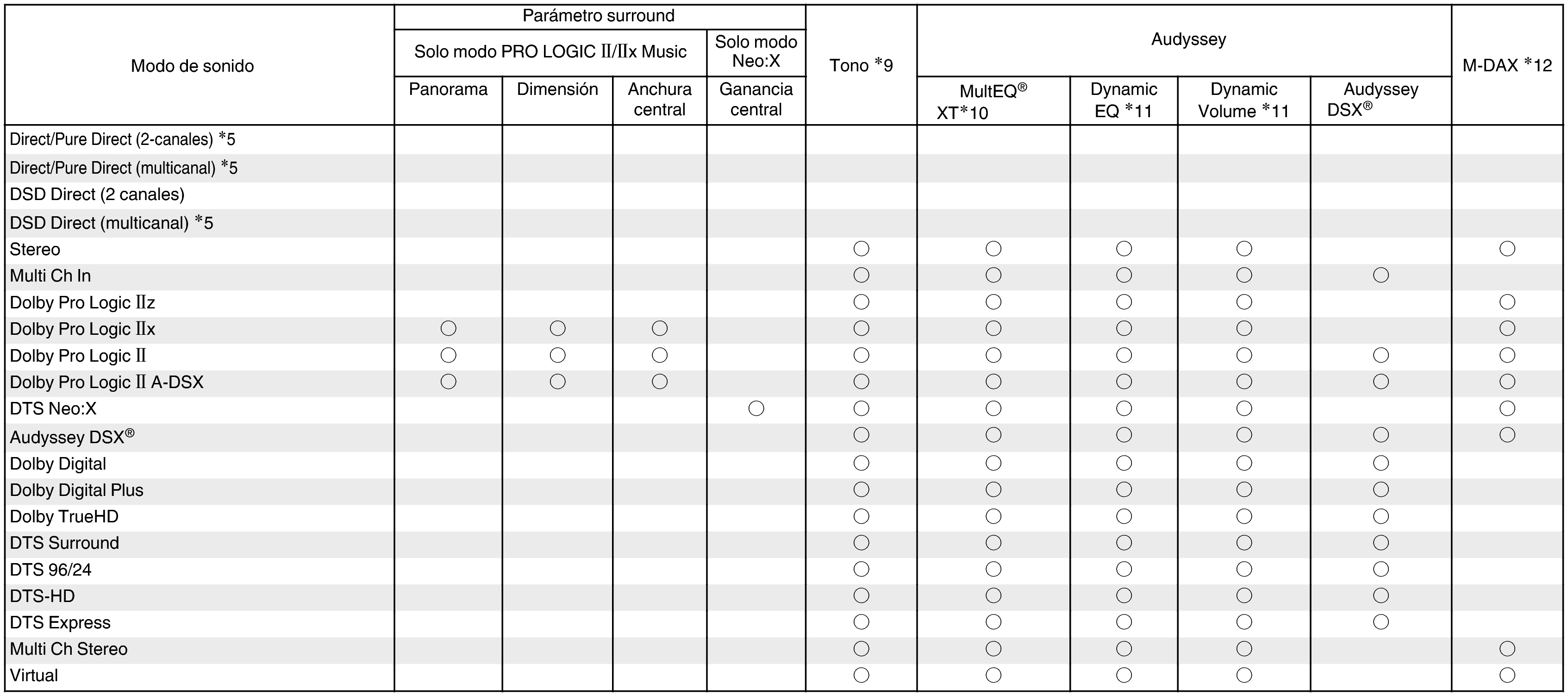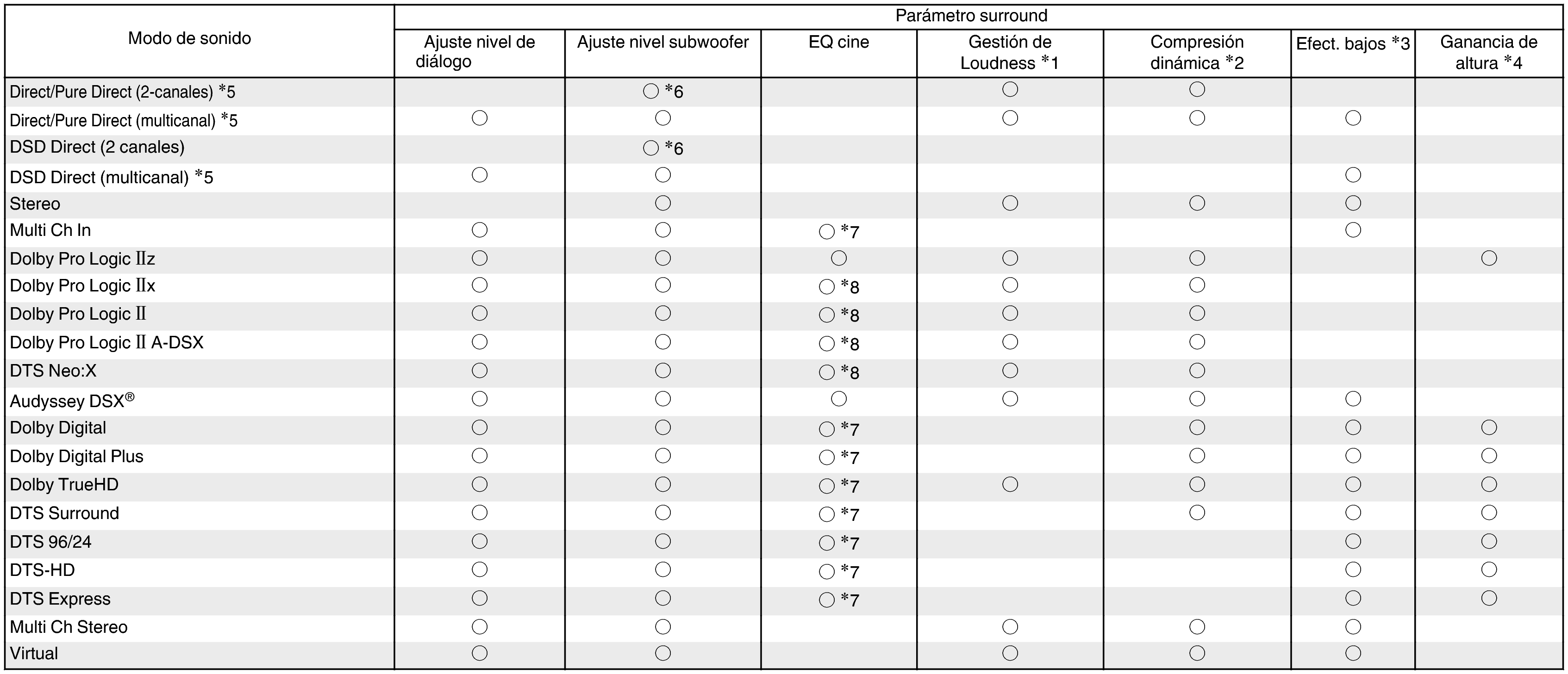 ∗5, ∗9 – ∗12 : Modos de sonido y parámetros surroundenlace