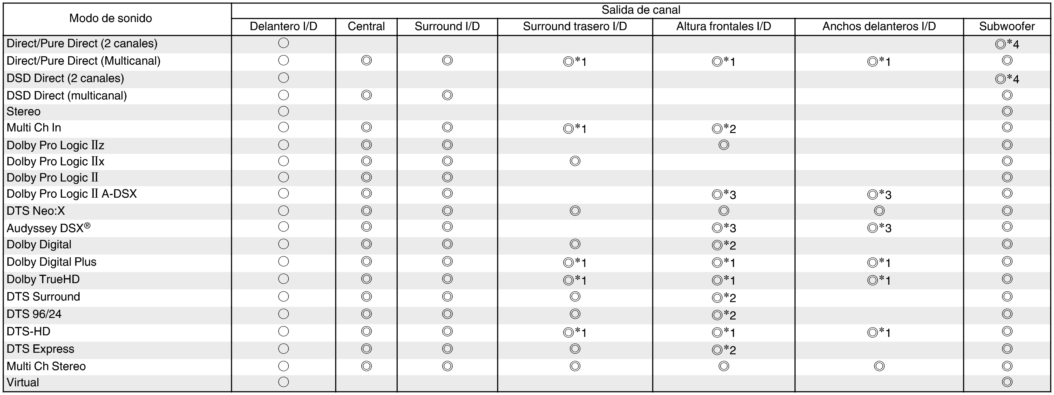 Modos de sonido y canales de salida