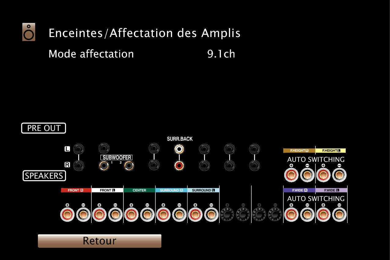 En plus des connexions décrites dans p.lien - lien, cet appareil permet diverses connections d’enceintes avec le “Affectation des Amplis” réglage.