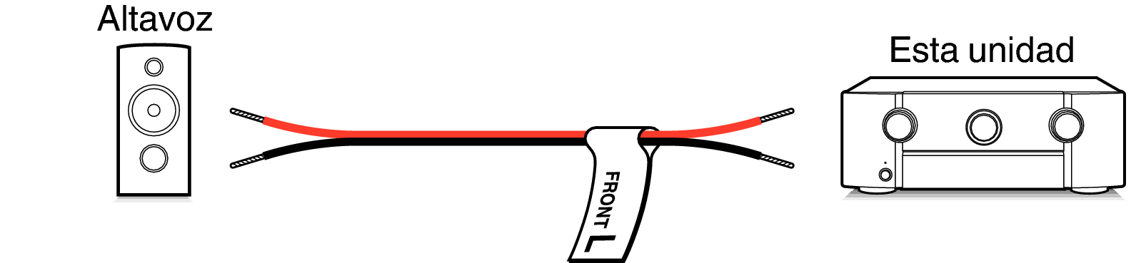 Entonces, realice la conexión, de manera que el color del terminal del altavoz coincida con la etiqueta del cable.