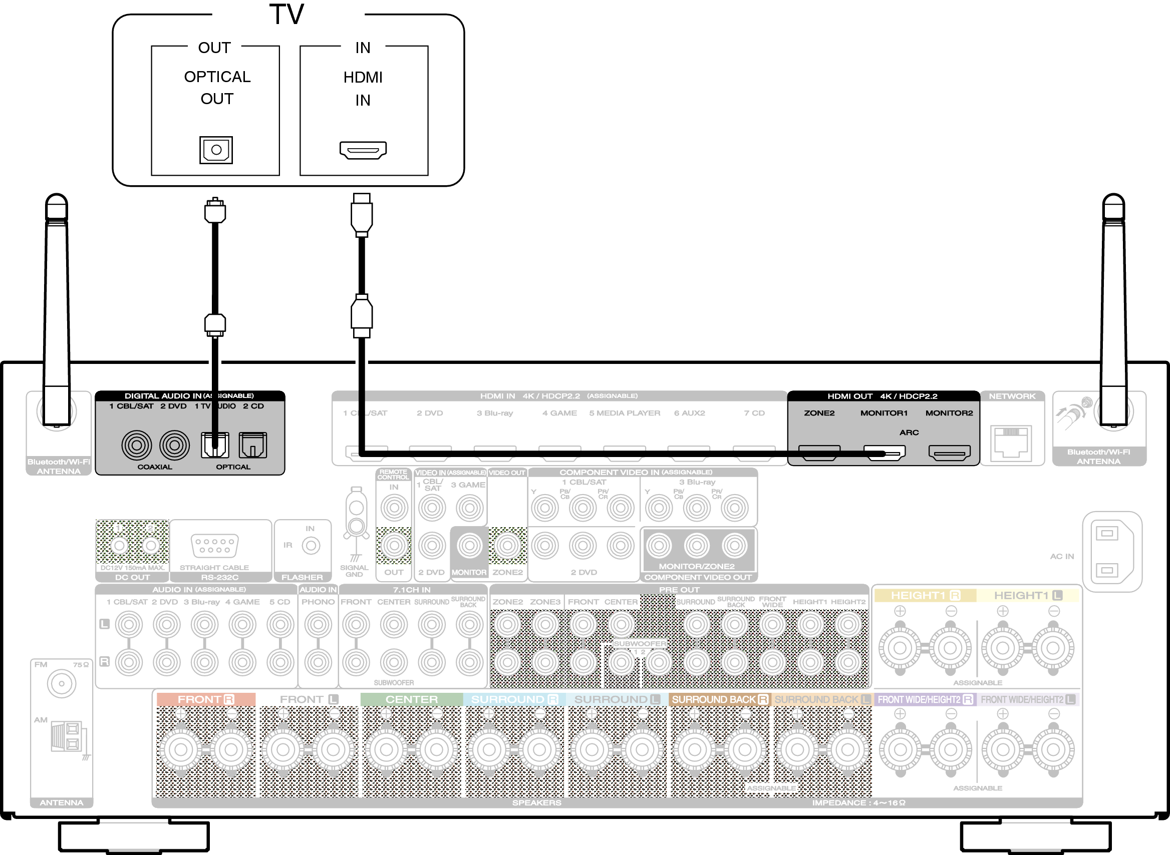 Conexión 2 : TV equipado con un conector HDMI y compatible con la función ARC (Audio Return Channel)