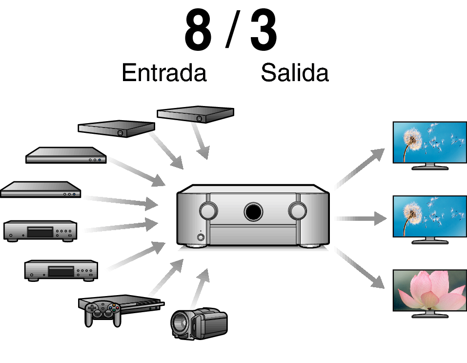 Las conexiones HDMI permiten la conexión a varios dispositivos AV digitales (8 entradas, 3 salidas)