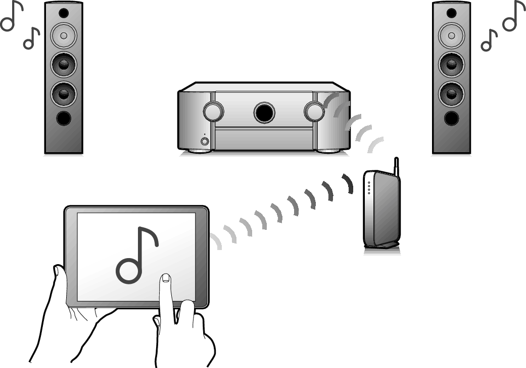 Descargue la “Marantz 2015 AVR Remote” apropiada para su iOS o dispositivos Android. Esta unidad tiene que estar conectada a la misma red LAN o Wi-Fi (LAN inalámbrica) a la que está conectado el iPhone o iPod touch.