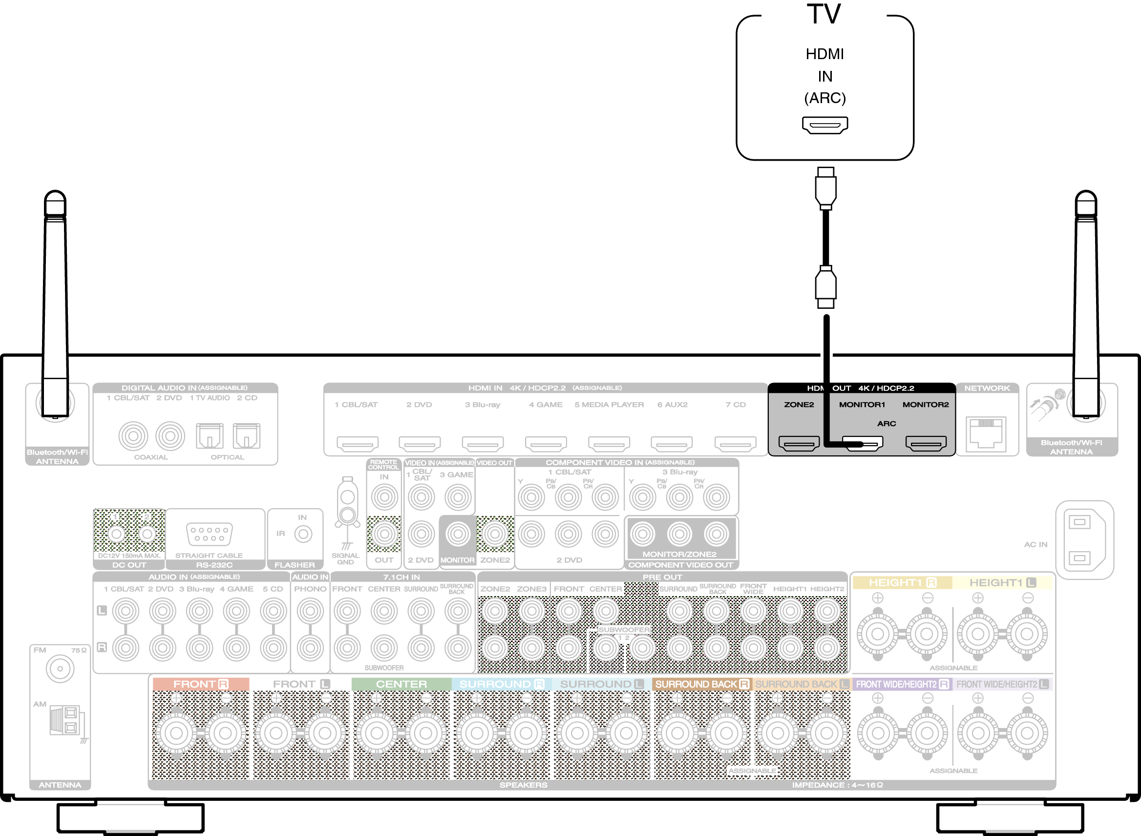 Conexión 1: TV equipado con un conector HDMI y compatible con la función ARC (Audio Return Channel)