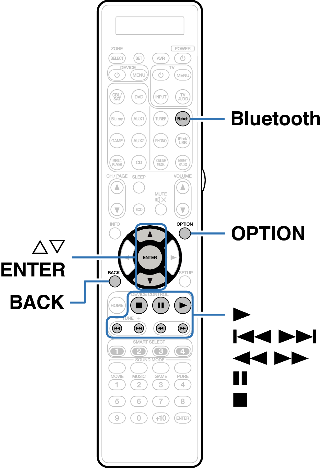 Los archivos de música guardados en dispositivos Bluetooth tales como smartphones, reproductores de música digitales, etc. pueden disfrutarse en esta unidad emparejando y conectando esta unidad con el dispositivo Bluetooth.